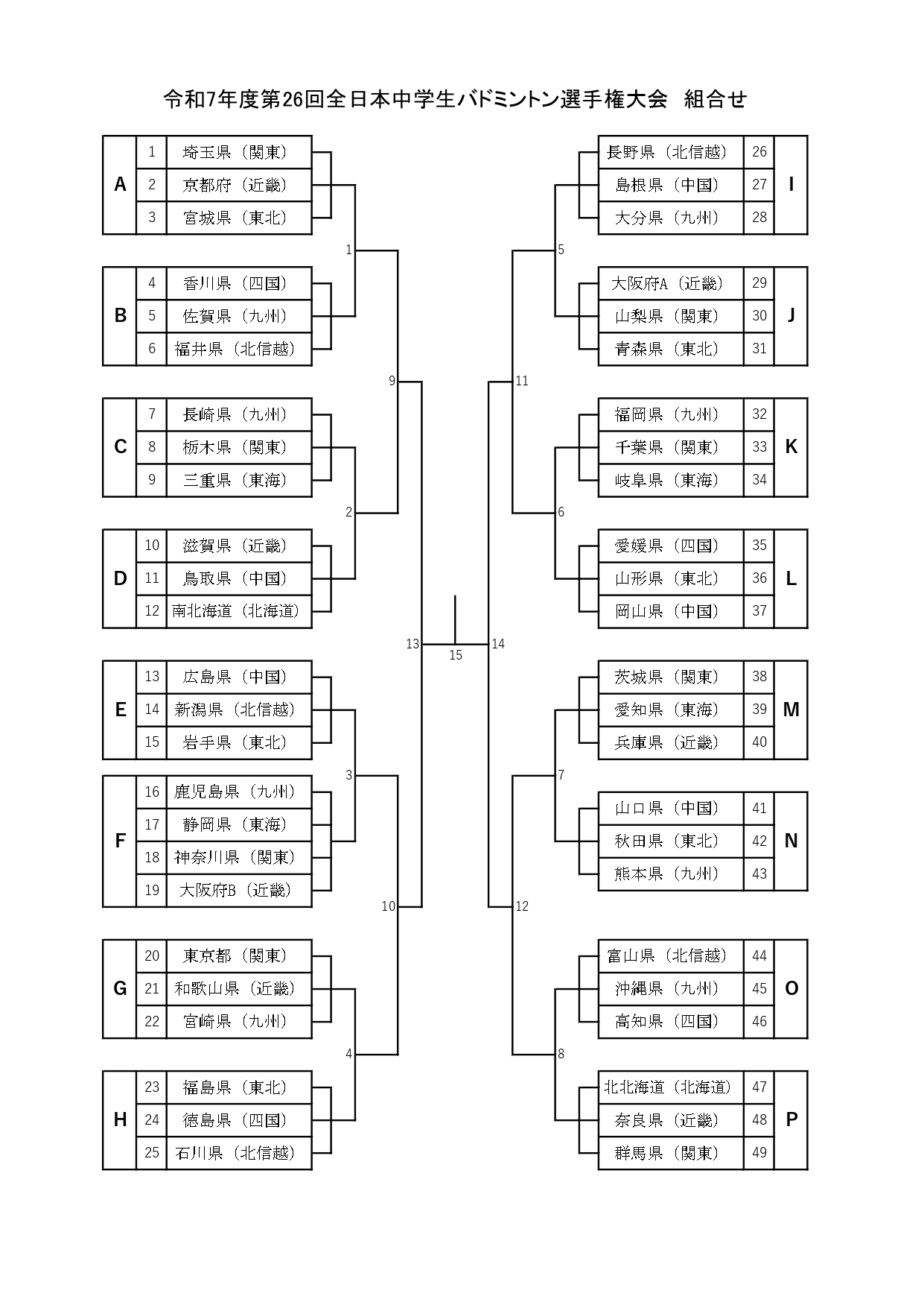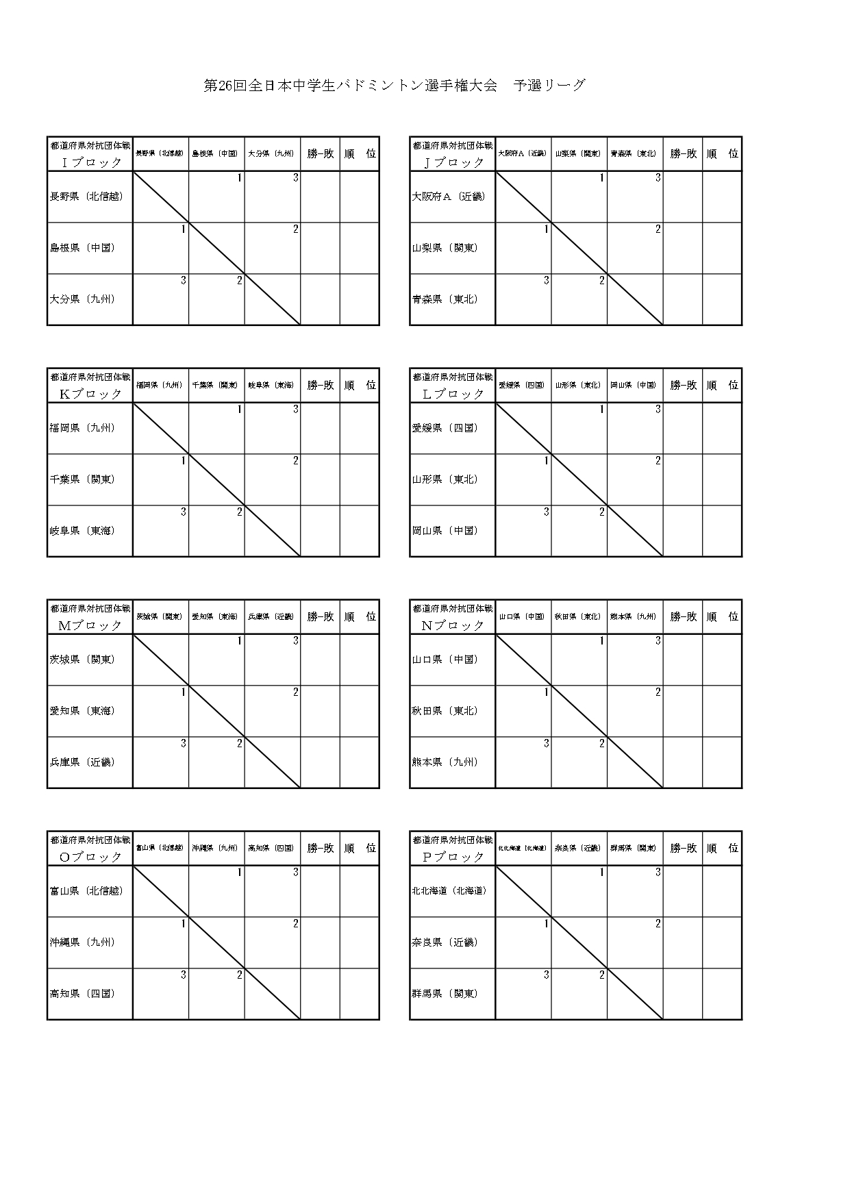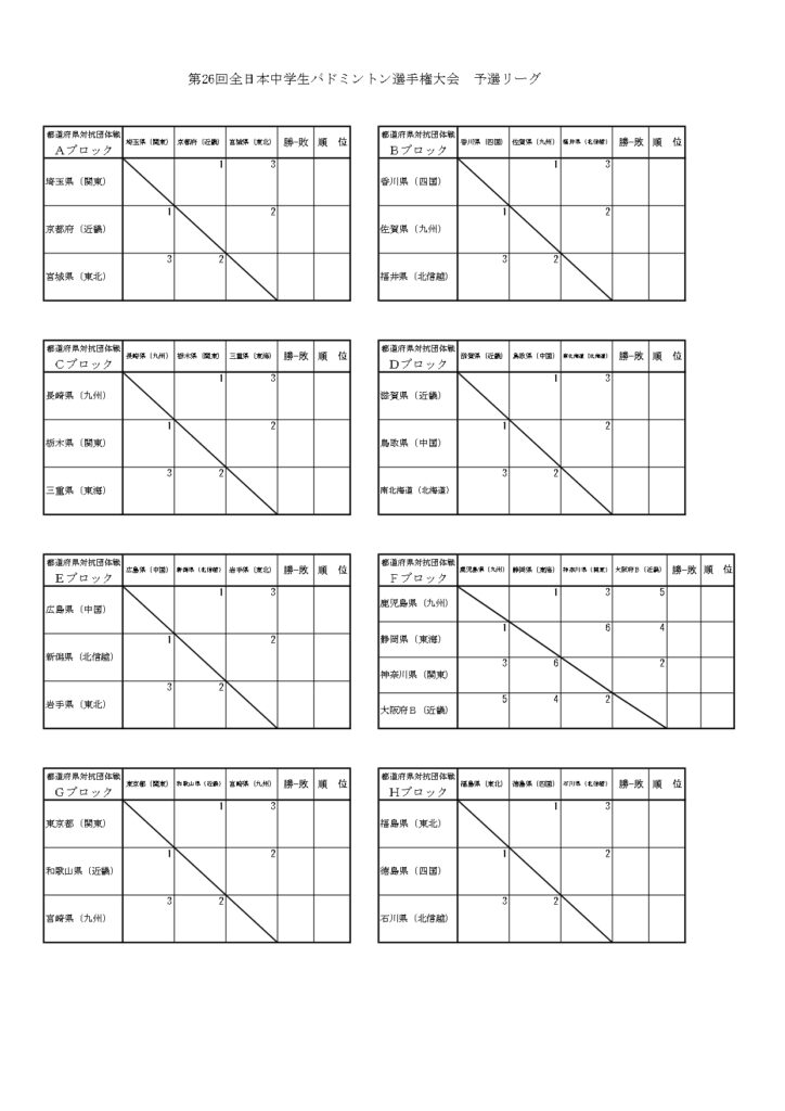 - 各都道府県対抗団体戦とし、男女単複は兼ねられない。