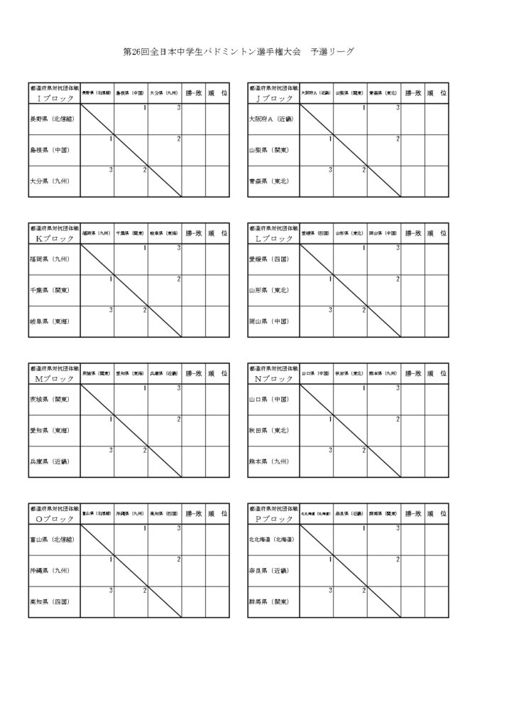 - 編成は3複2単(男子単-女子単-男子複-女子複-混合複)とする。