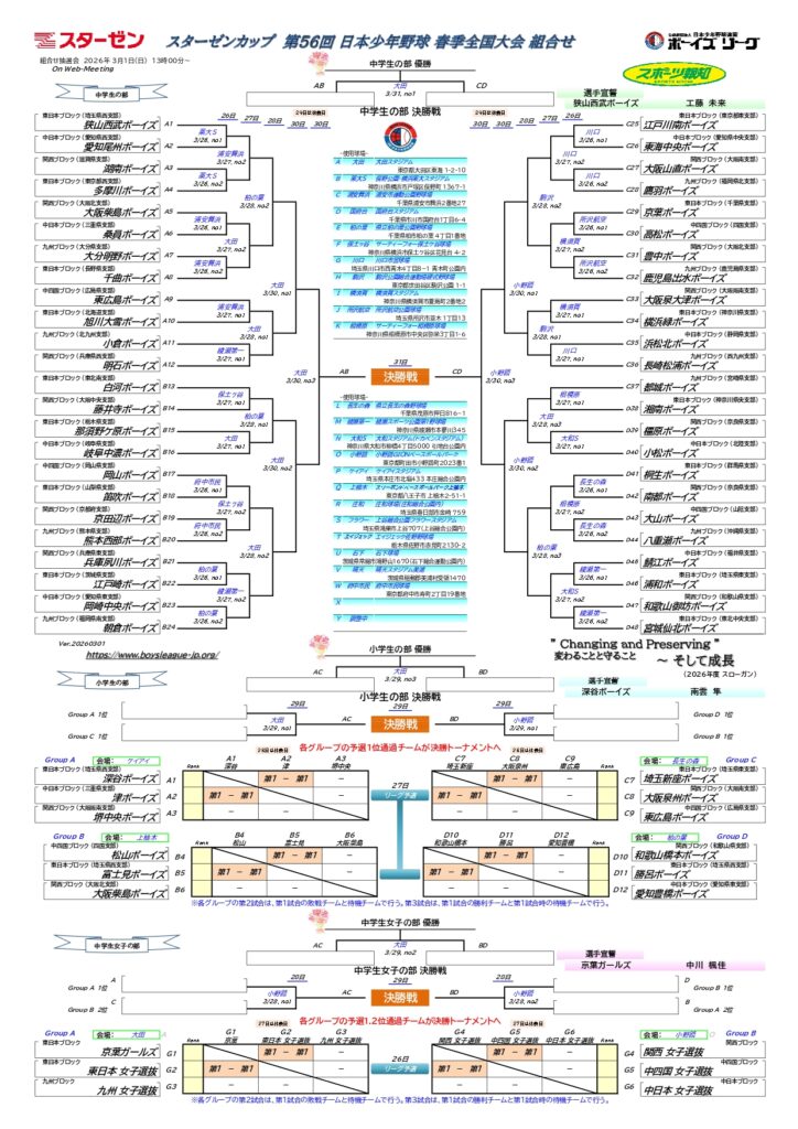 中学生の部、小学生の部の組合せになります。*わかり次第更新していきます。