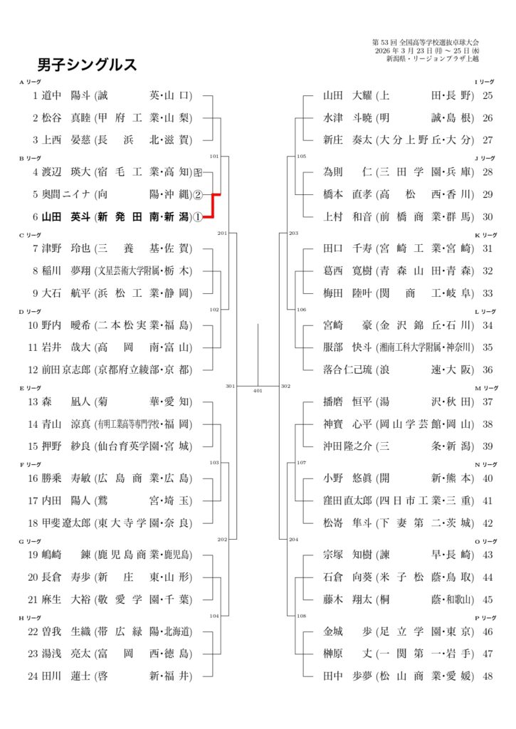 【男子 シングルス組合せ 2025-26】