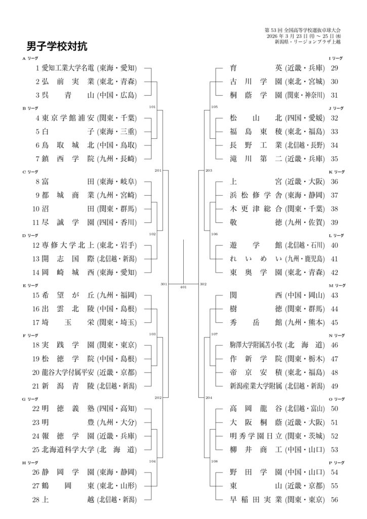 【男子 学校対抗組合せ 2025-26】