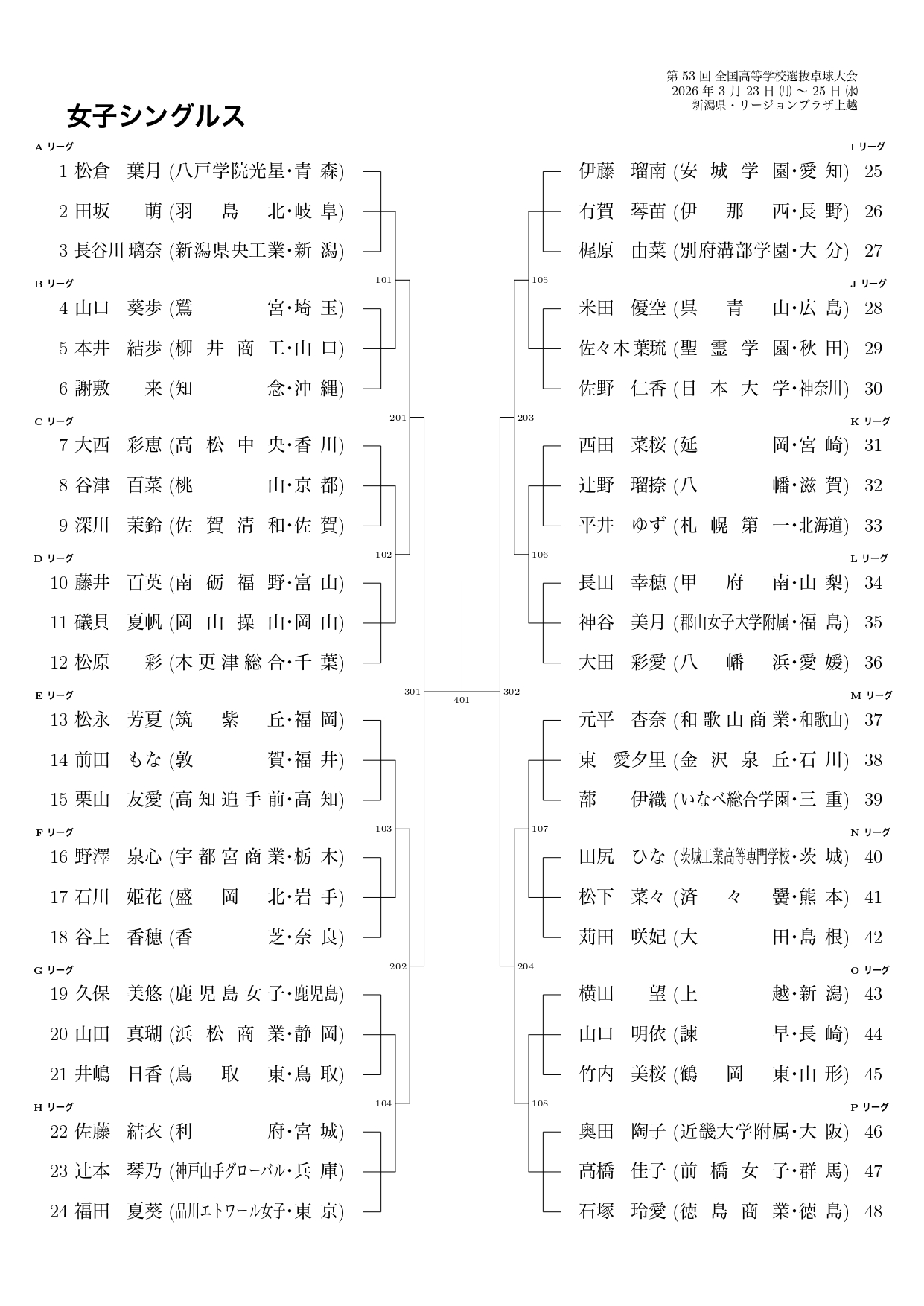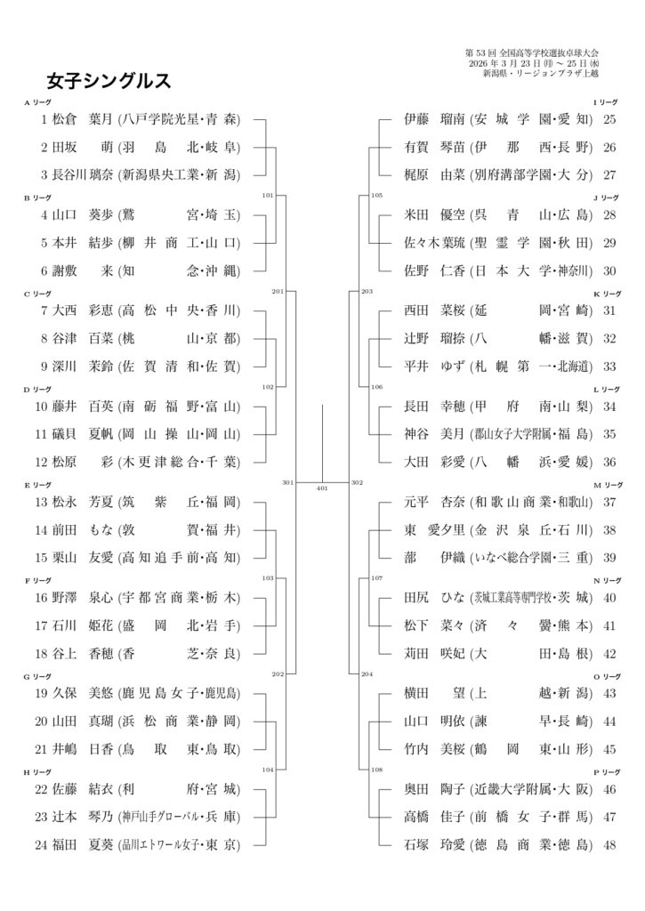 【女子 シングルス組合せ 2025-26】