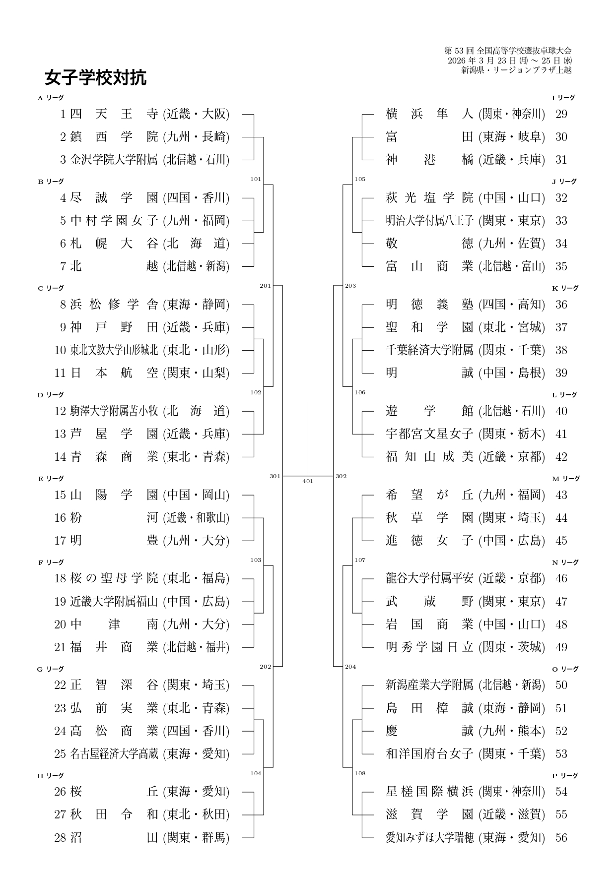 【女子 学校対抗組合せ 2025-26】