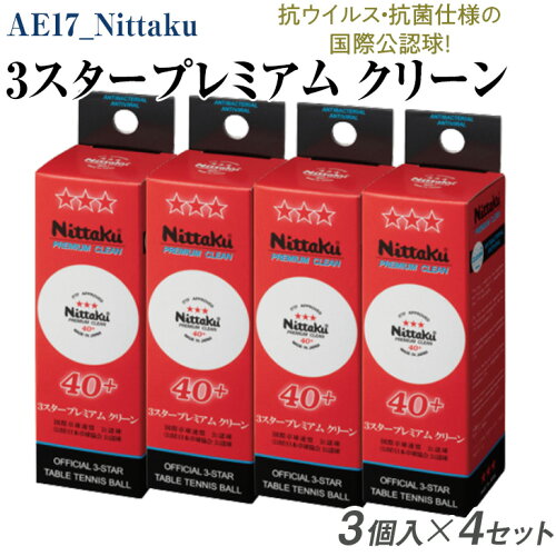 【ふるさと納税】AE17_Nittaku 3スタープレミアム クリーン 3個入×4セット|卓球 ボール 国際卓球連盟公認球 日本卓球協会使用指定球 抗ウイルス・抗菌仕様 ニッタク