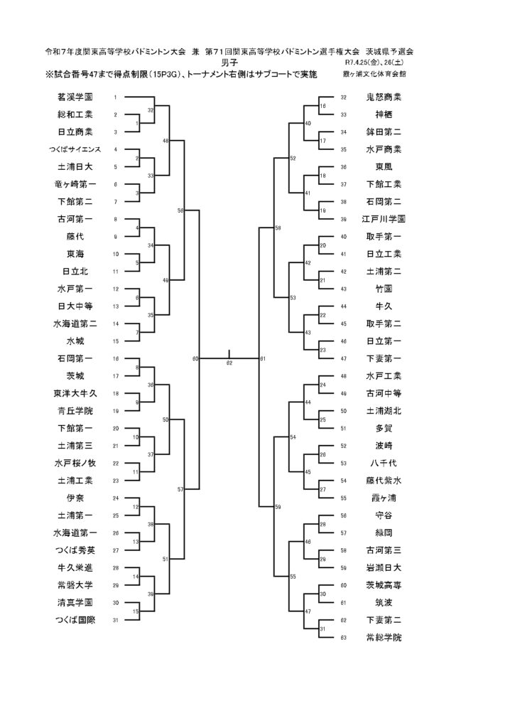 茨城県 バドミントン 組合せ2025(春季関東大会)