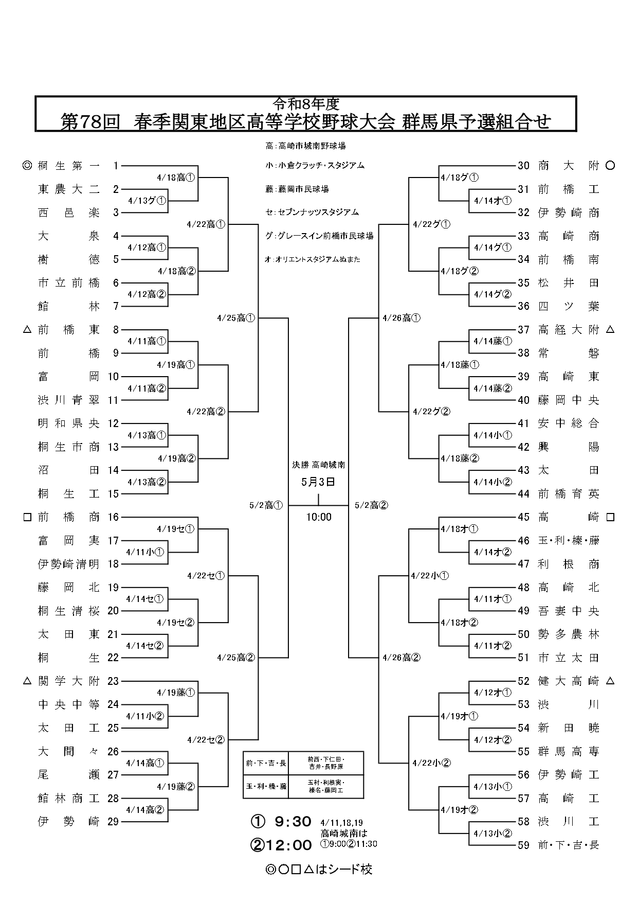 1回戦 群馬県 2026春季 4/11.12.13.14
