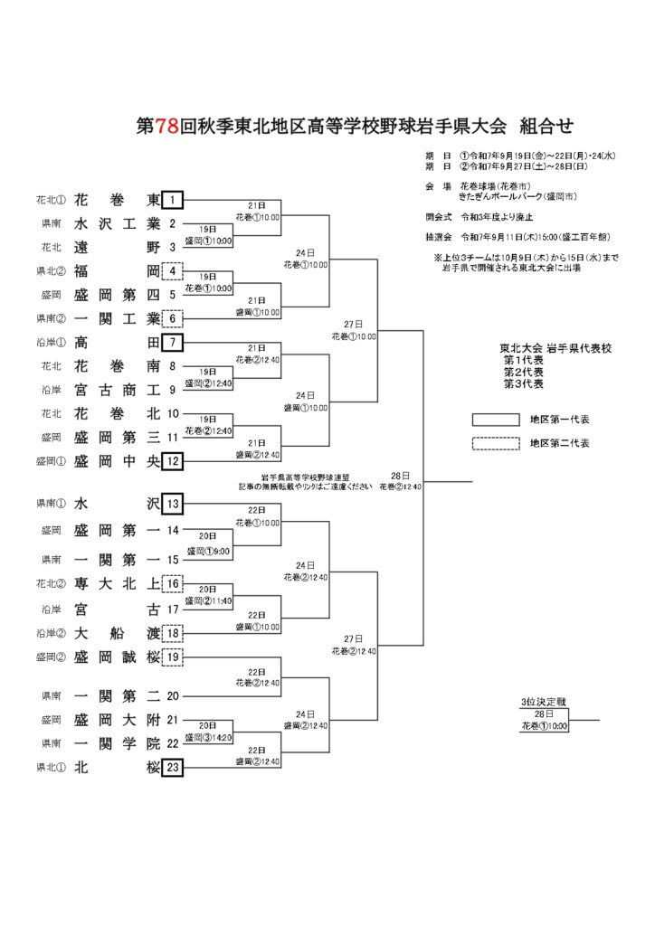 それでは、ここで秋季岩手県大会2025の試合速報(結果速報)をお届けします。