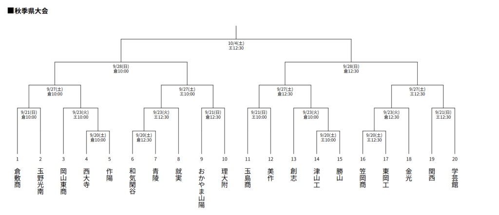 それでは、ここで秋季岡山県大会2025の試合速報(結果速報)をお届けします。