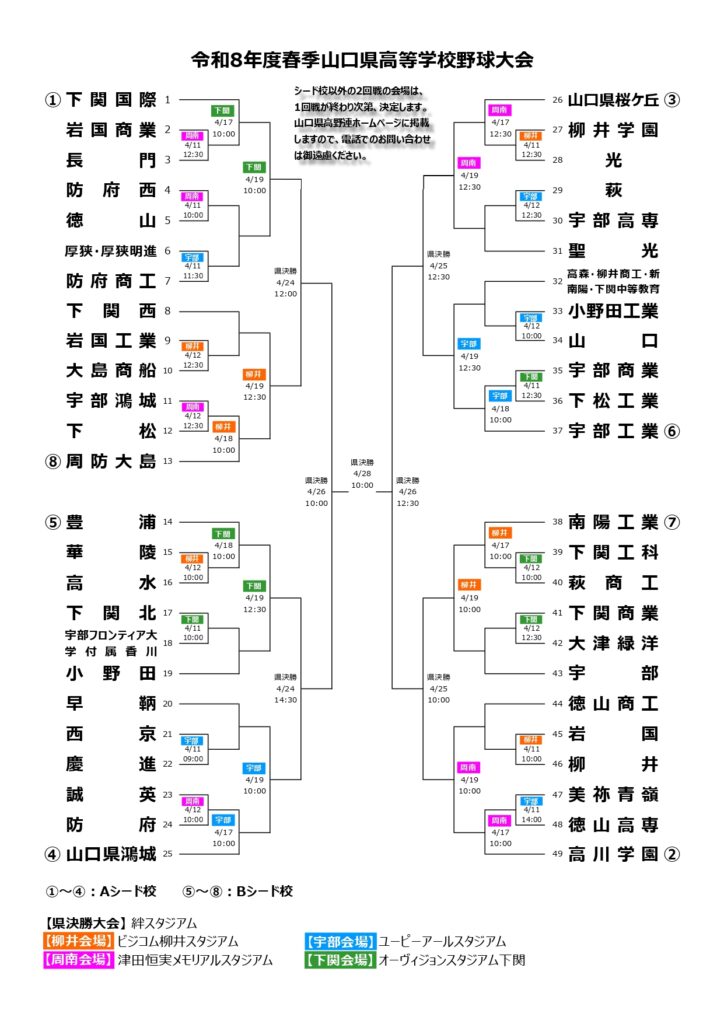 そんな山口県の春季高校野球大会の結果を中心に日程や組合せについても確認していきましょう。